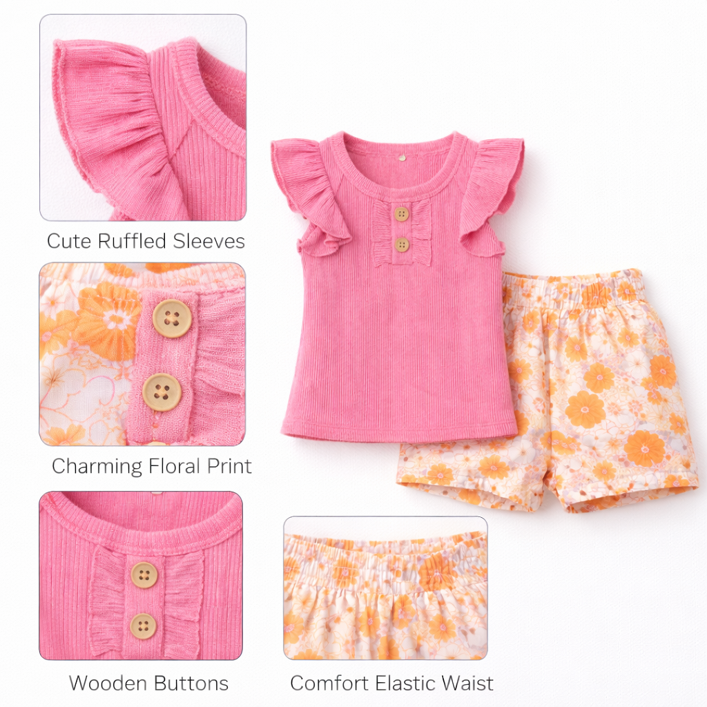 Baby Girl'S Cotton Ribbed Bodysuit With Floral Print, Headband