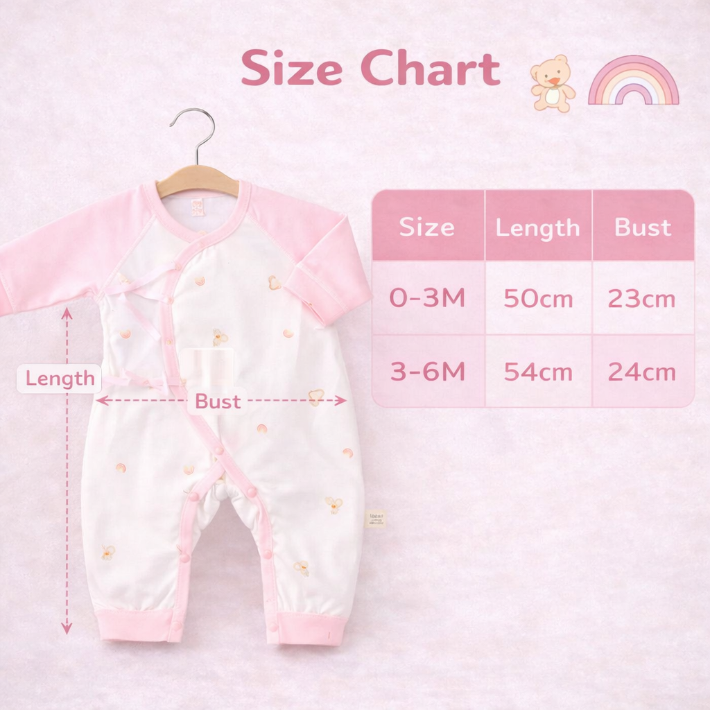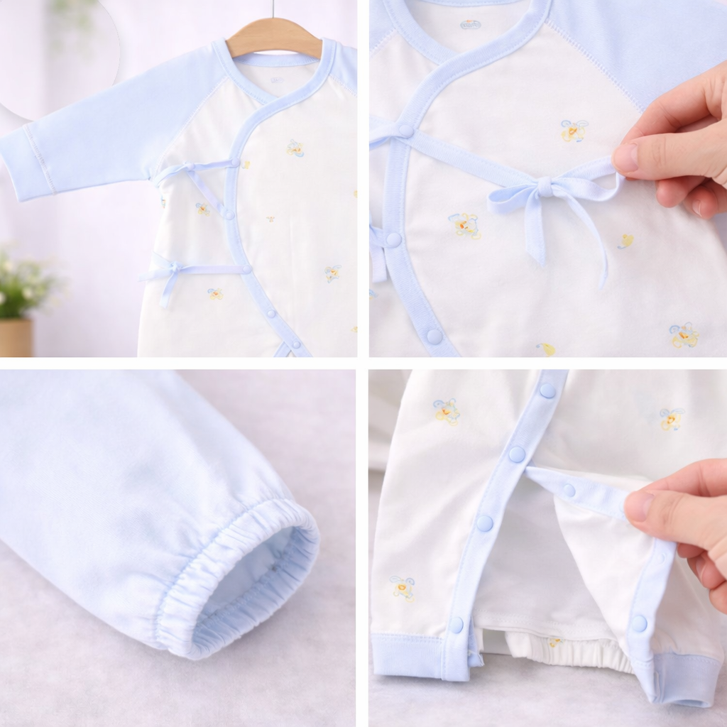 Baby Sleepwear Romper with Floral Embroidery, Long Sleeve, Tie-Front Design