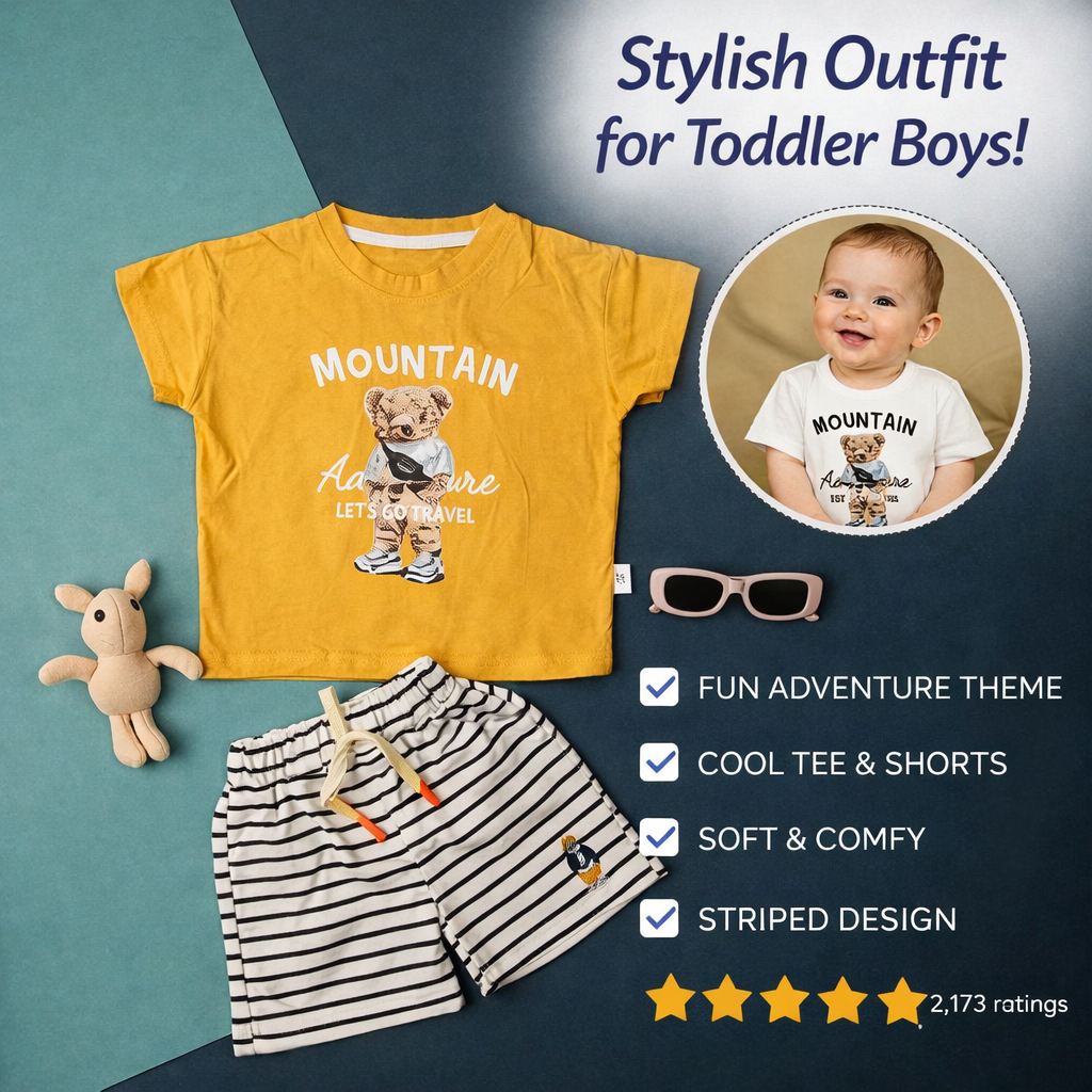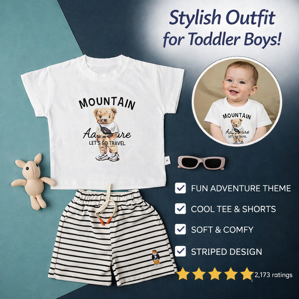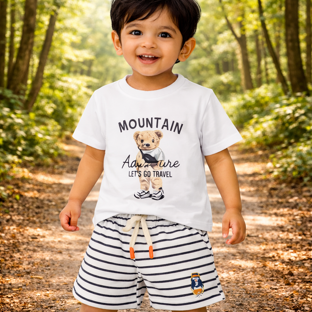 Baby T-Shirt and Striped Shorts Set, 2-Piece Outfit